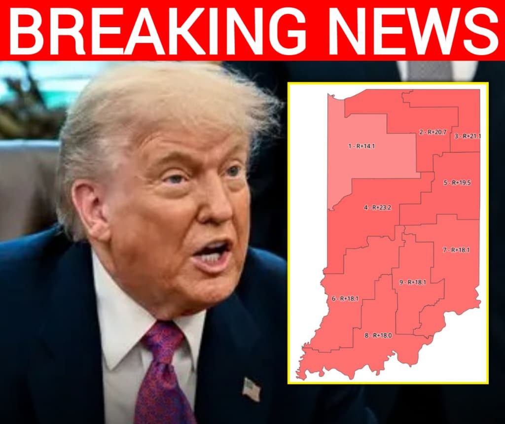 Indiana Pushes Bold Congressional Map That Could Flip Two Democratic Seats and Deliver Trump a 9–0 Republican Victory Heading Into the 2026 Midterms The state of Indiana is at the center of a growing national political storm — and this time, the fight isn’t about polling numbers or campaign promises, but district lines. A proposed new congressional map, circulated widely online and supported by leading Trump allies, could give Republicans a 9–0 sweep in the state’s U.S. House delegation for the 2026 midterms. The map, designed by political cartographer Erickson_68, shows deep red margins across nearly every district, with partisan
