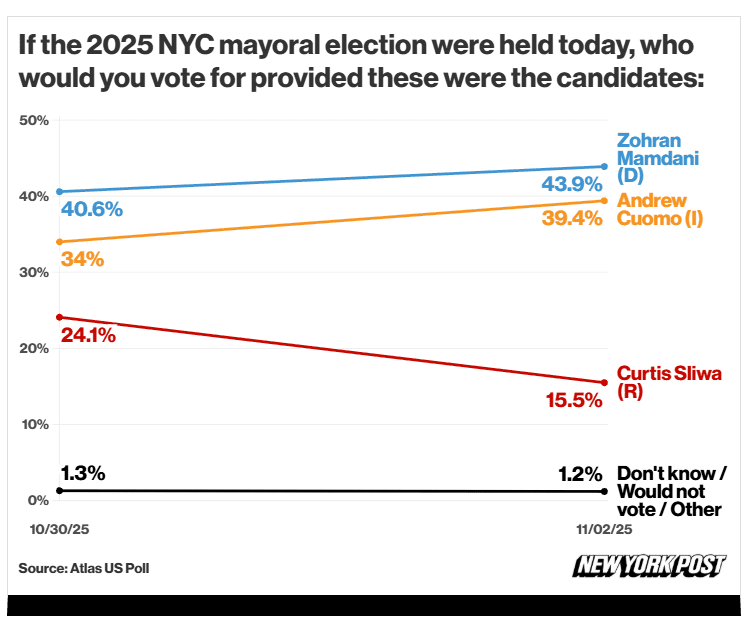 But the newest numbers paint a very different picture. According to the poll, Cuomo — running as an independent — would beat Mamdani in a direct face-off. It’s a bombshell that has jolted the city’s political establishment and electrified Cuomo’s supporters, who believe the city is yearning for experienced leadership rather than political experimentation. The findings suggest that New Yorkers, despite their frustration with the past, may still trust Cuomo’s steady hand more than the radical change Mamdani represents.