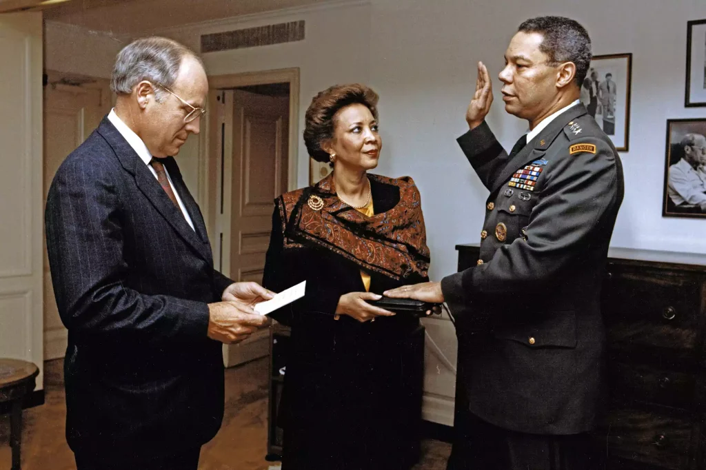 Before the vice presidency, Cheney’s record was already substantial. As Secretary of Defense under President George H.W. Bush from 1989 to 1993, he directed the U.S. military through Operation Desert Storm, leading coalition forces to a swift victory in the Gulf War. He played a pivotal role in reshaping U.S. military priorities following the Cold War, advocating for a smaller, more agile defense force adapted to the new geopolitical realities of the post-Soviet era.