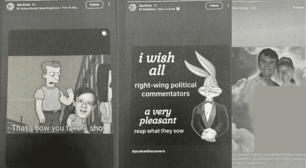 The posts, which spread quickly on social media, included edited Simpsons and Bugs Bunny memes. One suggested that right-wing commentators were simply “reaping what they sow,” while another bluntly declared “fucked around and found out,” laid over images referencing Kirk’s killing. For many observers, the idea that a federal employee would joke about or applaud the sniper attack at Utah Valley University on September 10 crossed a line that could not be ignored. The assassination itself had already rattled the country, but seeing it turned into online humor struck a new nerve.
