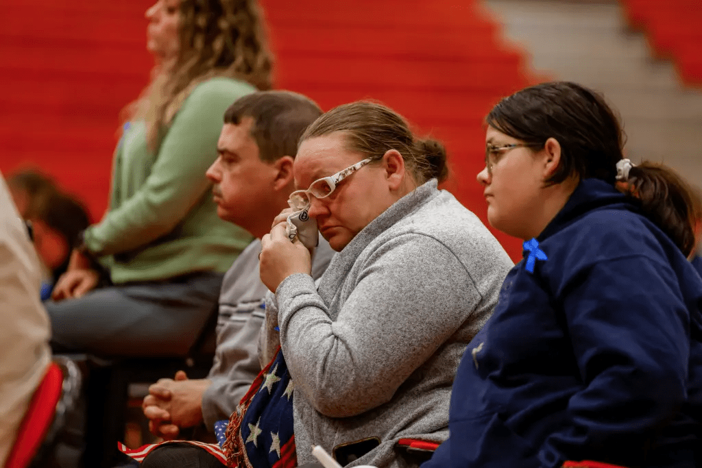 The winter wind whispered through the bare branches of the New River Gorge on the afternoon of December 1, 2025, carrying the faint scent of pine and river mist to the Webster Springs High School gymnasium, where 1,200 mourners gathered in a sea of camouflage and American flags for the memorial service of Specialist Sarah Beckstrom. At 20, the West Virginia National Guard soldier lay in repose in a flag-draped casket, her dress blues crisp and adorned with her unit patch, a bouquet of wildflowers from her platoon resting atop like a gentle farewell from the hills she loved. Among the sea of faces—fellow Guardsmen in berets, high school classmates clutching yearbooks, and family members holding hands in the front row—sat Adam Carr, Sarah’s ex-boyfriend of six years, his eyes red-rimmed but steady as he rose to speak. “Sarah had a heart so big it could hold the world—she’d do anything for anyone, even strangers,” Carr said, his voice catching as he recounted their road trips to the coast and her quiet habit of packing extra sandwiches for training. The service, attended by Vice President JD Vance and Gov. Patrick Morrisey, became a tapestry of tribute to a young woman whose brief life burned bright with kindness and courage, cut short by a midday ambush in Washington, D.C., that has left her family, friends, and a nation reflecting on the quiet sacrifices of those who serve.