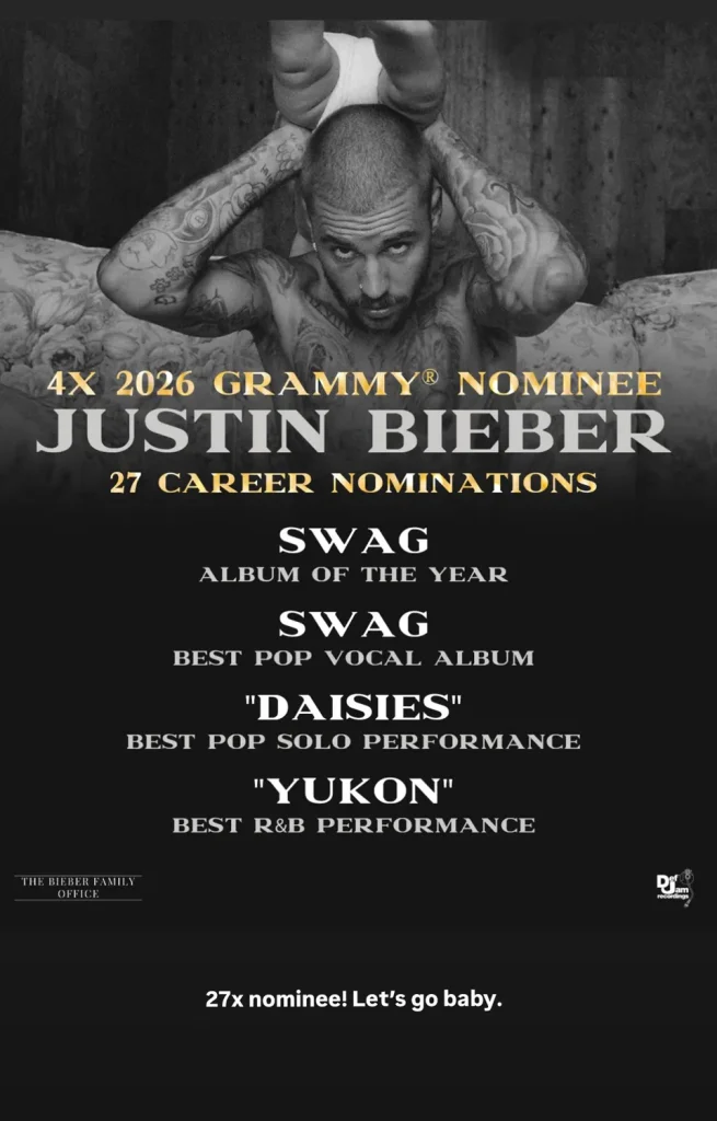 Justin’s SWAG marked a turning point in his career, his first solo album since 2021’s Justice. Released in July 2025, the album instantly became a cultural event. It debuted atop charts worldwide, earning nearly 200 million first-day streams and widespread praise for its sleek mix of pop, R&B, and introspective storytelling. When the Grammy nominations were announced, SWAG was recognized in four major categories: Album of the Year, Best Pop Vocal Album, Best Pop Solo Performance for “Daisies,” and Best R&B Performance for “Yukon.” For Hailey, watching her husband’s work receive such recognition was deeply personal — and sharing a video of their little boy enjoying his father’s music made the celebration all the more touching.