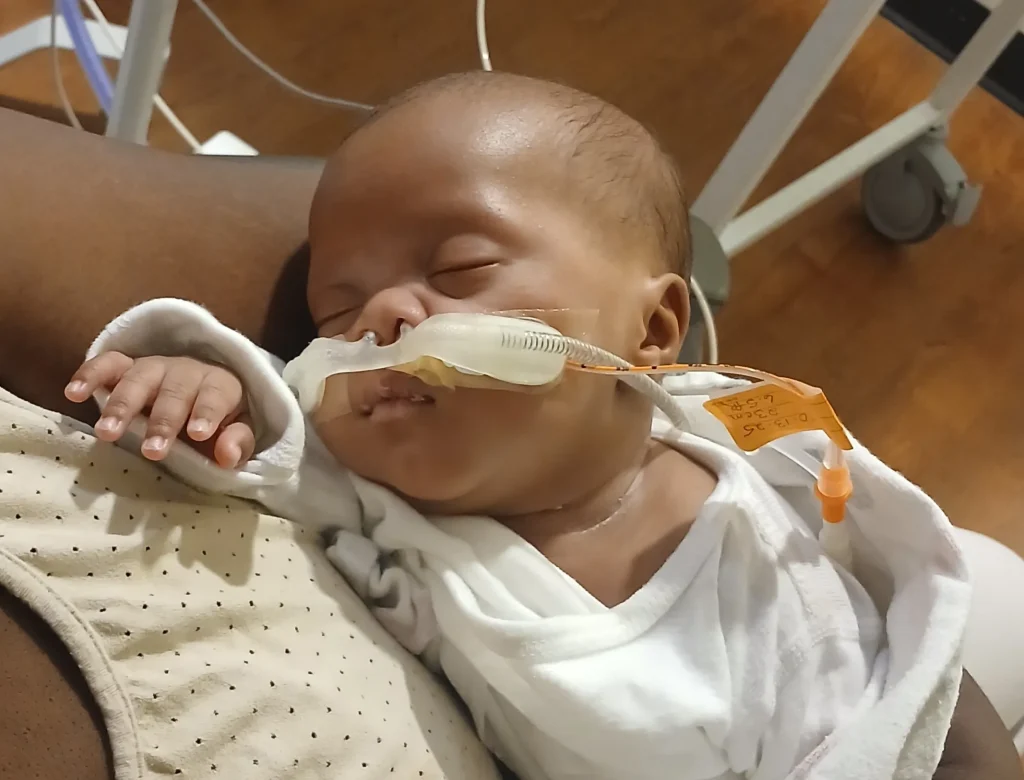 The months since have been a grueling marathon of milestones and setbacks, each day in the NICU a testament to medical miracles and human endurance. Chance, now nearly six months old but developmentally closer to a 2-month-old due to his prematurity, has battled infections, breathing crises, and the simple terror of existing in a body not yet ready for the world. His lungs, the primary concern from the start, remain underdeveloped, requiring a ventilator that whooshes rhythmically beside his bed. Feeding tubes deliver nutrition drop by drop, his weight climbing slowly to just over 7 pounds—a gain hard-won through sleepless nights for nurses and April’s constant vigil. In August, the family shared glimmers of hope: Chance opening his eyes wider, grasping a finger with surprising strength, even a brief spell off the vent that had everyone cheering. “He’s making a little bit of progress,” April told outlets then, her optimism a shield against despair. Messiah visits when he can, pressing his hand to the plastic barrier, whispering secrets only big brothers know. But progress is uneven; recent scans showed lingering fluid issues, and doctors have warned of potential long-term challenges—developmental delays, vision concerns, the kind that demand therapies and specialists for years to come.