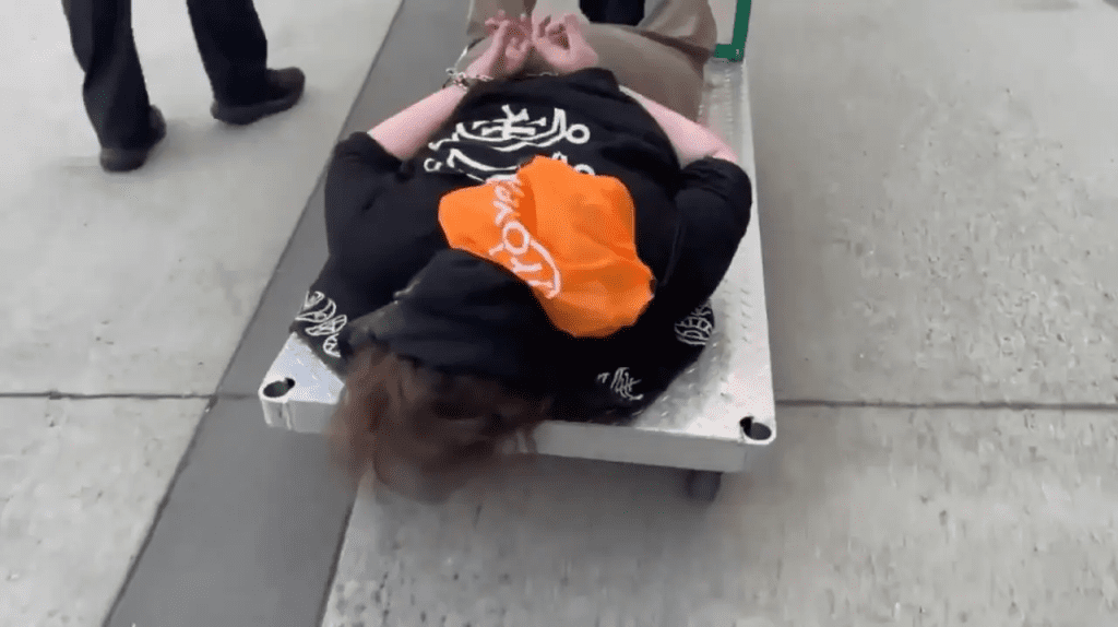 ICE ignited controversy over the weekend after posting a viral video showing a detained protester in Portland being wheeled away on a metal flatbed cart. The footage, shared Sunday on X (formerly Twitter), shows a hooded individual lying face-down with hands cuffed behind their back while officers roll the cart down a sidewalk. The video was set to the 2005 hip-hop track “Ridin’” by Chamillionaire and captioned, “Refuse to walk? We’ll give you a ride.” Within hours, the clip had exploded online, drawing millions of views and sparking fierce debate over whether the agency crossed a line.