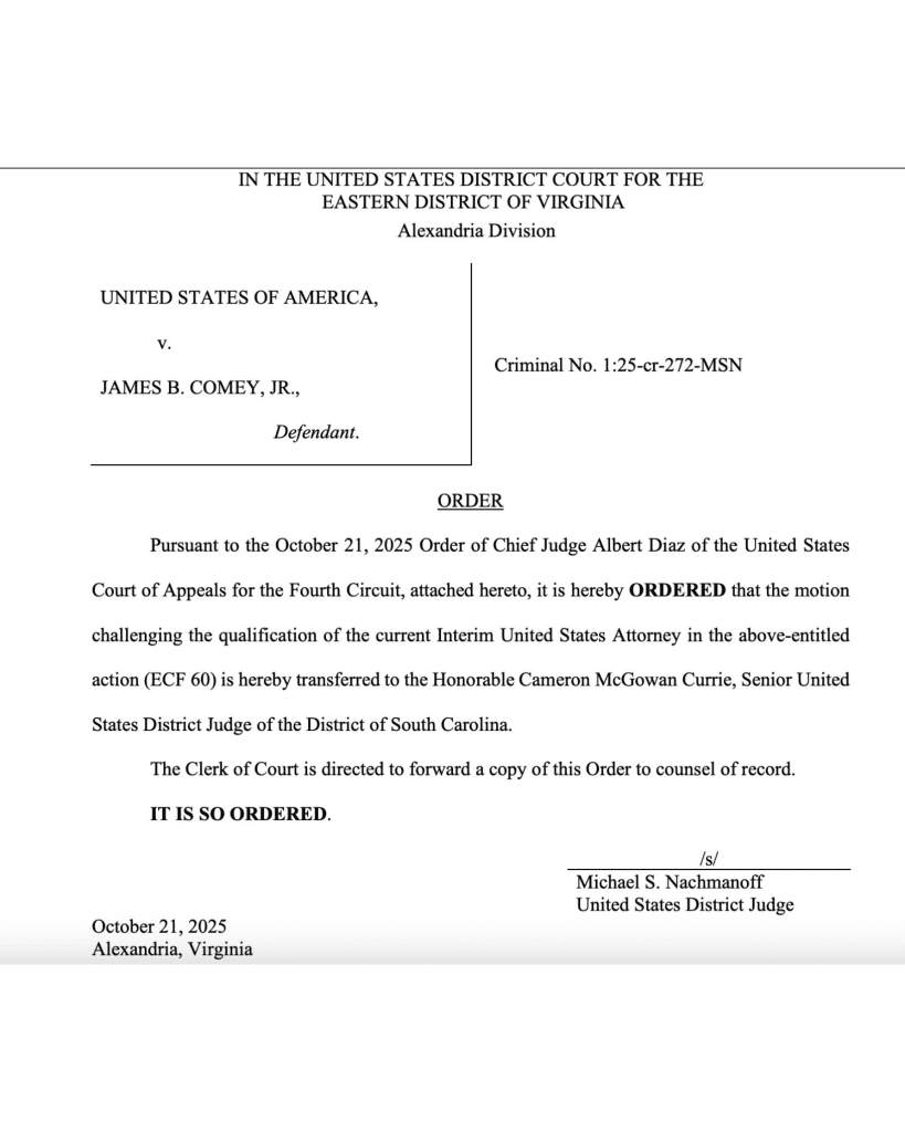 Outrage Erupts as Judge Transfers Key Decision That Could Remove Trump-Appointed U.S. Attorney Lindsey Halligan from James Comey’s Criminal Case