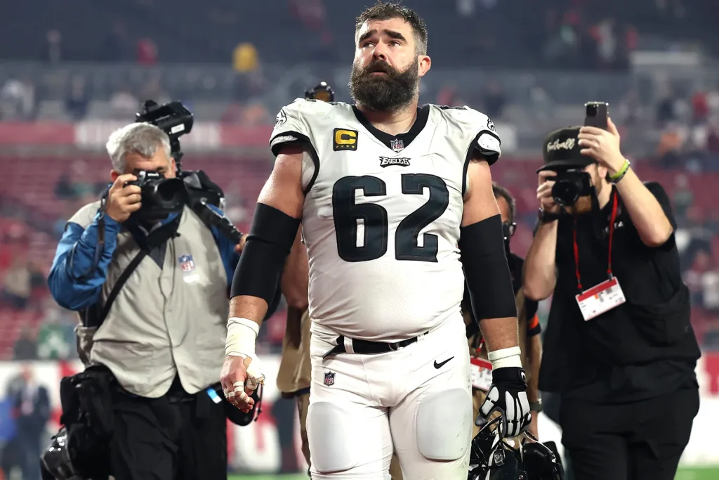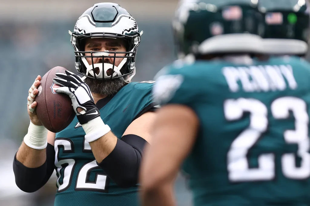 Jason Kelce, who retired earlier this year after an incredible 13 seasons with the Philadelphia Eagles, has always been open about how much his wife’s strength and perspective shaped him. While fans saw him as the powerhouse on the field, Kylie was the calm presence off it — the one reminding him to stay focused, stay smart, and avoid unnecessary drama. The rule wasn’t about controlling him; it was about protecting him — from injuries, from fines, and from the kind of impulsive chaos that can follow competitive moments in the NFL.