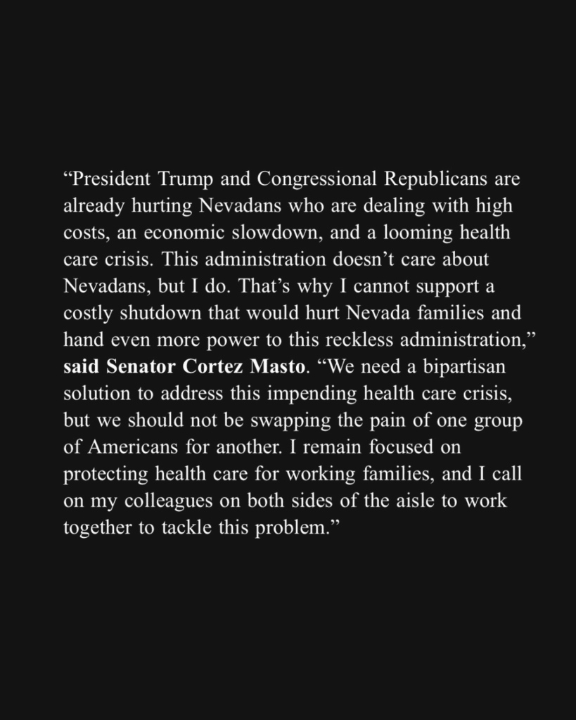 In the end, President Donald Trump signed the stopgap bill, and the government remained open through Sept. 30, 2025. For Cortez Masto, the episode was another example of the messy, often misunderstood decisions lawmakers must make to balance principle with pragmatism. She did not support the final bill, but she believed allowing debate to proceed was the lesser of two evils. Her story illustrates that bipartisan votes are sometimes necessary to avert crises, even if they come at the cost of party unity. It also serves as a reminder that behind every dramatic headline are families trying to keep their lives running—people whose health care bills need paying, whose jobs depend on functioning government, and who cannot afford another prolonged shutdown. Keeping their needs in focus may not make for flashy political theater, but for senators like Cortez Masto it remains the guiding force behind difficult choices.