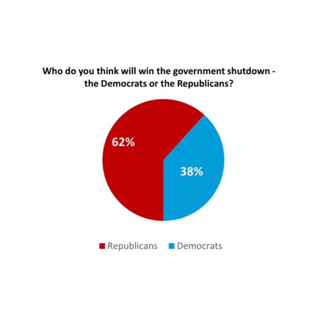 The survey, which polled over 2,000 registered voters nationwide, paints a striking picture of public sentiment at a time when frustration over Washington gridlock is running high. While 70% of Americans said they oppose the shutdown itself, the same group overwhelmingly believes Republicans have the upper hand in how the situation is being handled. This “perceived winner” factor could carry major political implications for both parties as they brace for an extended battle that threatens to reshape public trust ahead of the 2026 midterm elections.