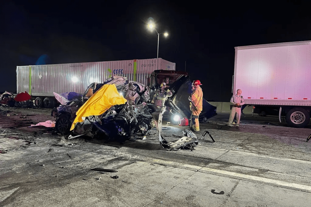 Photos from the crash site show the wreckage engulfed in flames, with first responders working through the night to extract victims from twisted metal. Witnesses described a chaotic scene as multiple vehicles collided and burst into fire. The aftermath has since become a focal point for national debate on highway safety, immigration enforcement, and state accountability.