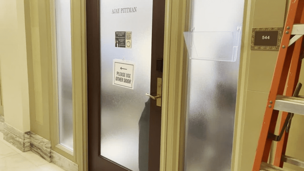 The search warrants were executed on October 28, 2025, by investigators from the Oklahoma Attorney General’s office. Sources familiar with the operation confirmed that agents seized financial records, digital devices, and campaign materials tied to Pittman’s ongoing ethics case. Witnesses at the State Capitol said Pittman’s office door, located in Room 544, was sealed off with a “Please use other door” sign, as law enforcement restricted access to the area.
