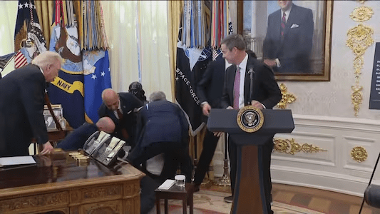 The Oval Office, a space synonymous with power and decision-making, has seen its share of tense moments, but Thursday’s scene stood apart for its human vulnerability. What began as a routine announcement about healthcare turned, in seconds, into a sobering reminder of life’s fragility — and the unpredictable realities that even history’s most powerful room cannot control.