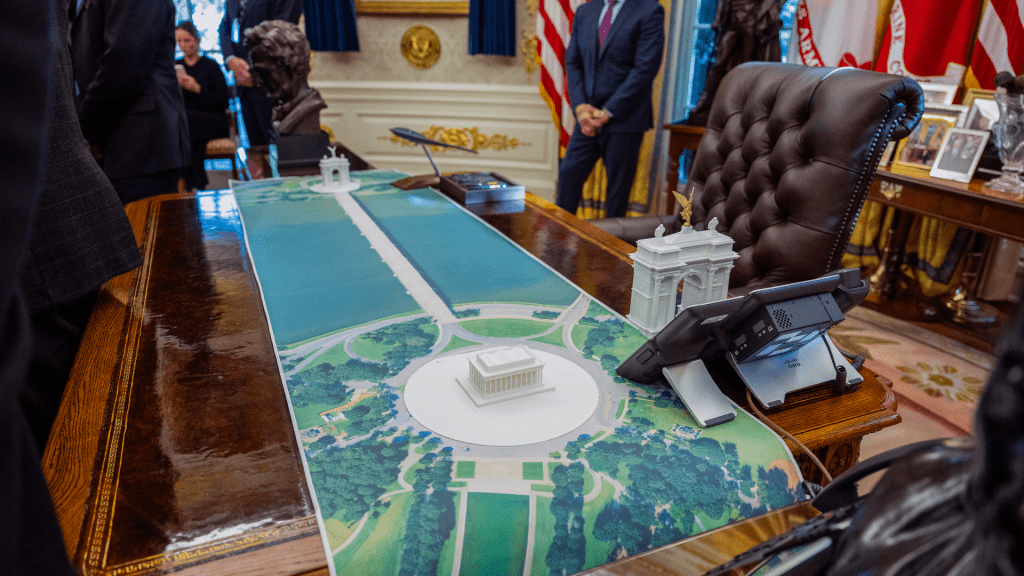 According to Trump, the monument will commemorate 250 years of American independence and serve as a new chapter in the nation’s architectural legacy. “It will be a monument to the greatness of our Republic — to the people who built it, defended it, and made America the greatest nation in history,” Trump said during a private presentation of the design. The concept map displayed across the Resolute Desk in the Oval Office showed detailed placement of the arch, connecting it visually with the Lincoln Memorial and the Potomac’s riverfront.