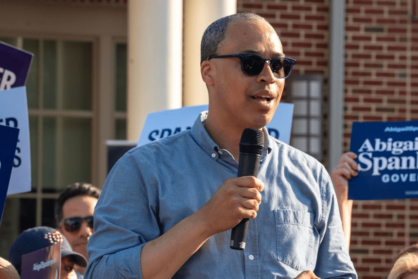 Images circulating alongside the turnout analysis capture that contrast vividly. Earle-Sears, wearing a striking red suit in front of the Virginia flag, is seen addressing a crowd of Republican supporters, while Democrat Jay Jones, running for attorney general, appears in photos from a packed rally in Richmond. Between them looms the Virginia state flag — a reminder of what’s at stake in this election: control of the state’s executive offices and direction for the next four years.