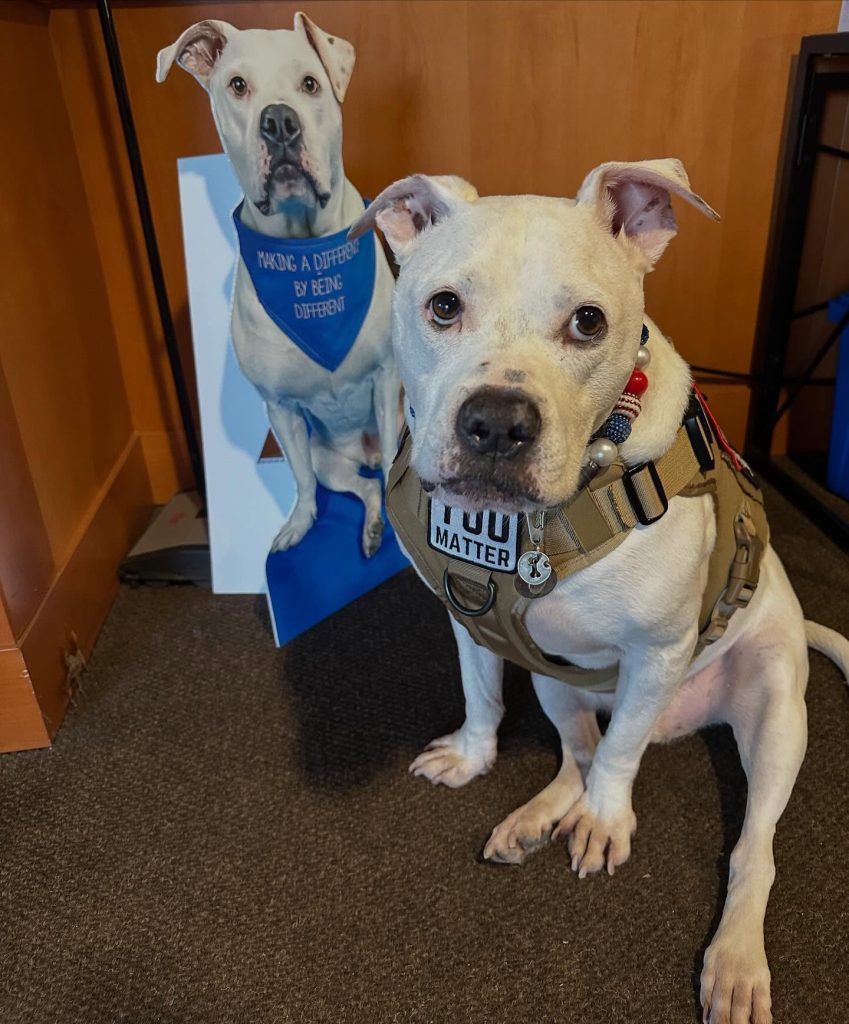 Cole wasn’t always destined for this life. Like many dogs with disabilities, he was once overlooked. Being born deaf means he requires hand signals instead of verbal commands, and being a pit bull means he faces breed stigma that persists nationwide. Yet his disability is what makes him extraordinary — it connects him to children who feel misunderstood, left out or “different” themselves. Students see in Cole what they often struggle to see in their own reflections: worthiness, resilience, acceptance.