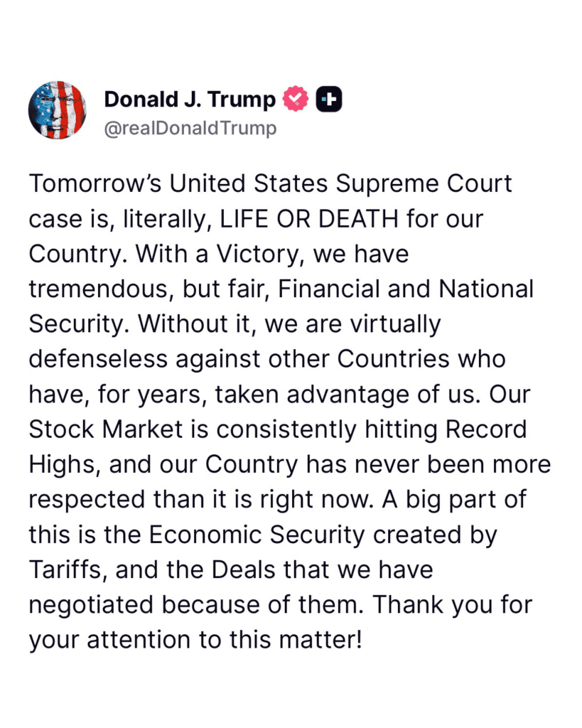 For Trump’s part, he has declined to attend the hearing in person, citing a desire not to draw attention away from the Court itself, but he continues to speak publicly and rally his base around the issue. His statement frames the fight in national-security terms, linking economic authority with sovereignty and strength. Whether the Court sees it that way remains to be seen.