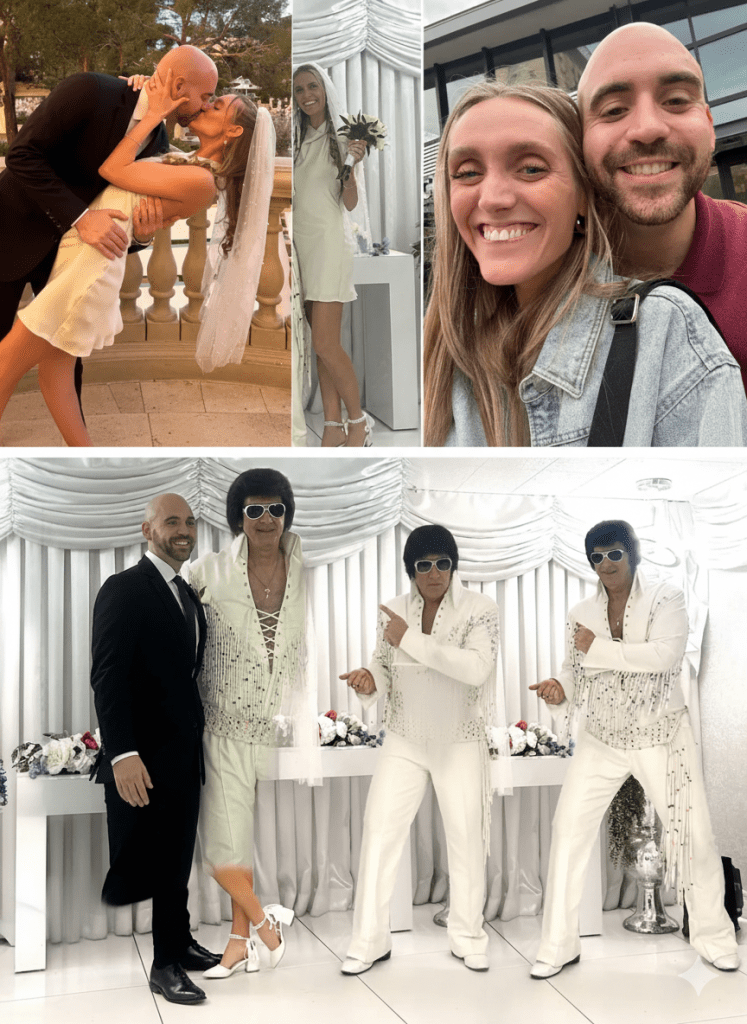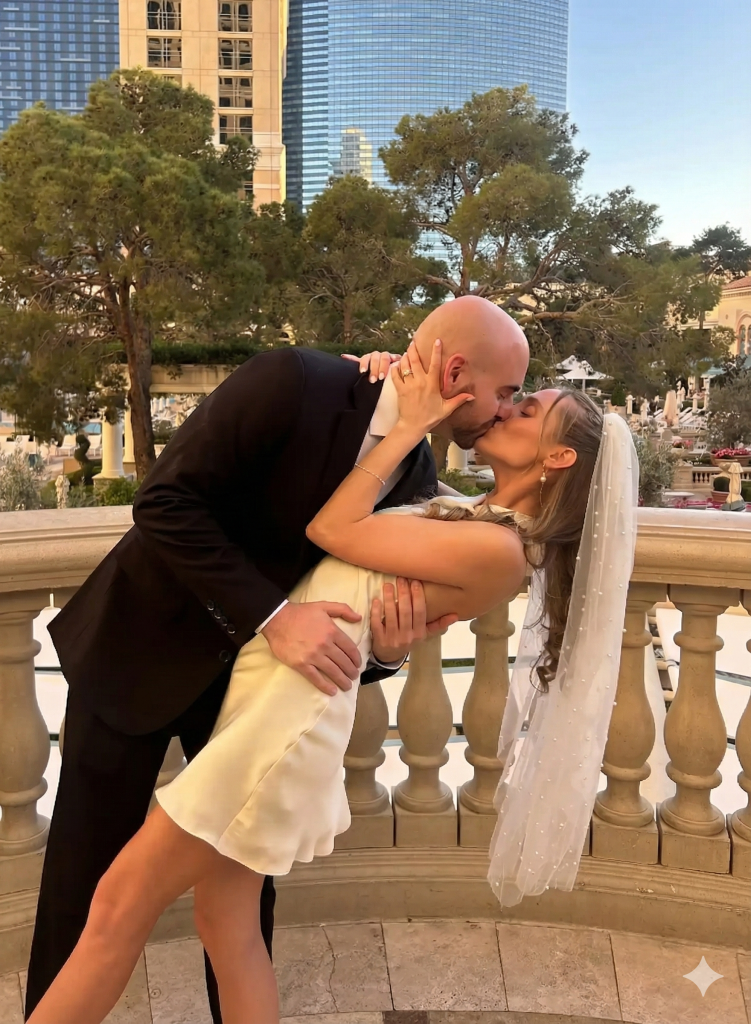 The photographs captured the moment perfectly: the golden desert light, the soft glow of the city behind them, and the way Kayla and Trenton held one another like they were finally home. Their kiss, framed by the iconic backdrop of Las Vegas elegance, looked like the crescendo of a love story that had always been waiting to resolve itself. It was intimate, emotional, and full of gratitude — a moment that marked not just the beginning of their marriage, but the triumph of a connection that refused to disappear.