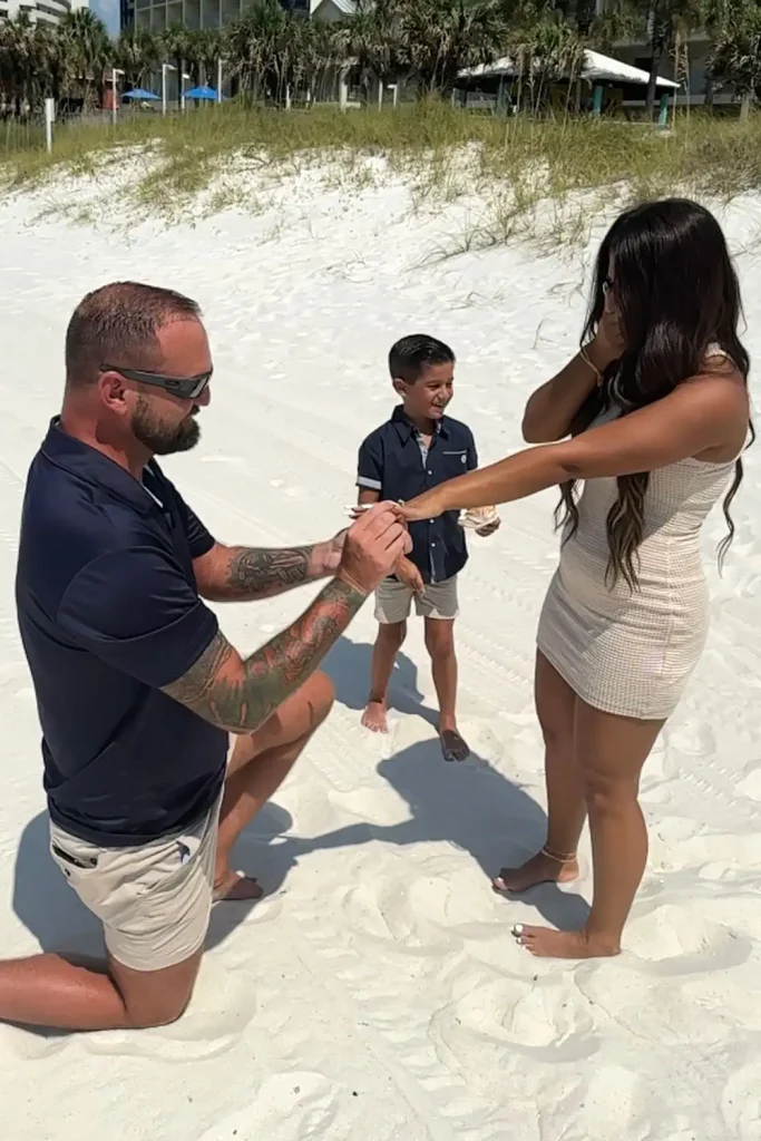 On a sunny afternoon at the beach, the same man who once searched for her safety knelt down again — this time to ask for her hand in marriage. The moment was caught on camera: Roro covering her mouth in disbelief, her young son smiling nearby, and the man she now calls her “hero” sliding a ring onto her finger.