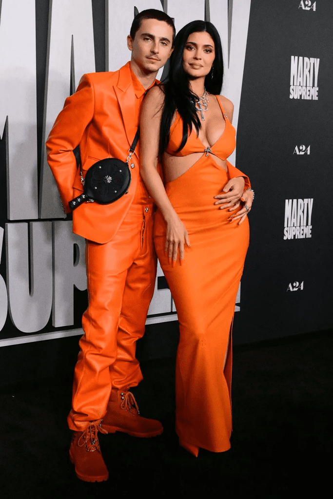 Timothée Chalamet and Kylie Jenner are no strangers to commanding attention, but their appearance at the Marty Supreme premiere in Los Angeles on December 8 created a different kind of buzz — one that blended fashion, strategy, humor, and a moment of unexpected virality. Their perfectly coordinated orange outfits lit up the carpet, prompting immediate speculation about whether the bold color was symbolic, spontaneous, or simply a stylish coincidence. But as it turns out, the choice was far from random. According to those close to the actor, the inspiration can be traced back to a now-viral Zoom marketing call that circulated widely online in November.