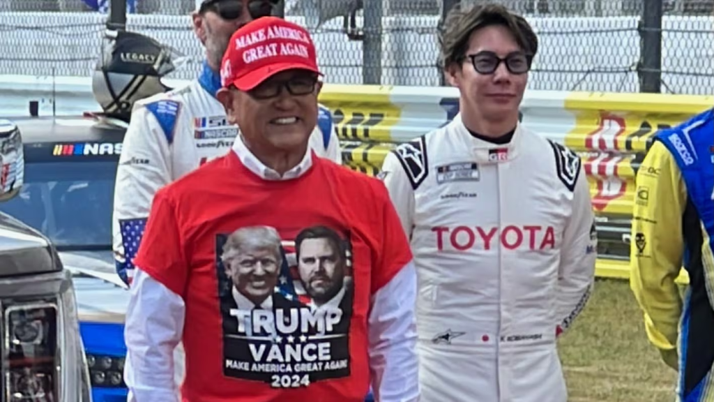 Amid the thunderous roar of engines and the acrid tang of burning rubber at Fuji Speedway, where the Japanese countryside rolls out like a green canvas under a crisp November sky, Akio Toyoda stepped into the spotlight not as the scion of an automotive empire, but as a man wearing his heart—and his politics—boldly on his sleeve. It was November 16, 2025, the final lap of Japan’s ENEOS Super Taikyu Series, but the real race stealing the show was a star-spangled NASCAR extravaganza hosted by Toyoda himself, the 69-year-old chairman of Toyota Motor Corporation whose family name has powered the world since his grandfather Kiichiro dreamed up the first Corolla in a postwar shed. There, grinning ear-to-ear in a crimson “Make America Great Again” hat perched atop his silver hair and a “Trump-Vance 2024” T-shirt stretched across his frame, Toyoda led a convoy of six gleaming NASCAR beasts—piloted by legends like Jimmie Johnson and Kamui Kobayashi—around the track in a Ford F-150 that screamed American muscle. Flanked by U.S. Ambassador George Glass in the passenger seat, Toyoda wasn’t just celebrating speed; he was saluting strength, a generational ally to the United States whose visible nod to President Donald J. Trump felt like a heartfelt high-five across the Pacific, a testament to bonds forged in factories and fairways that run deeper than any trade spat.