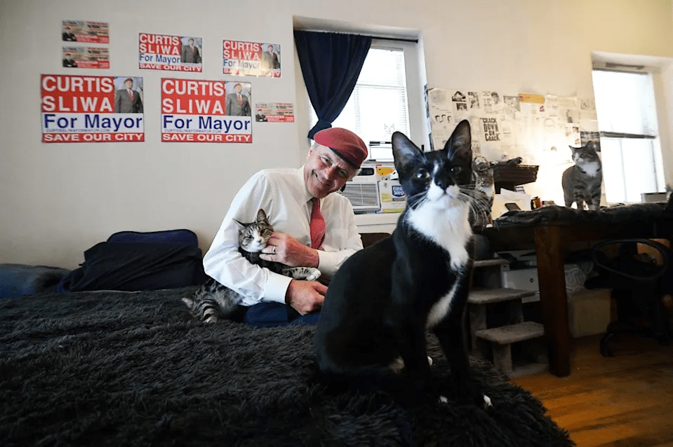 Sliwa, known for founding the Guardian Angels anti-crime patrol in 1979 and for his trademark red beret, has spent years building his reputation as a fighter for ordinary New Yorkers. But it’s his home life that continues to make headlines — a cramped Upper West Side apartment filled with rescued cats, scratching posts, and food bowls lining the floor. His affection for animals is genuine, but it’s also become a political talking point, drawing both sympathy and skepticism from potential voters.